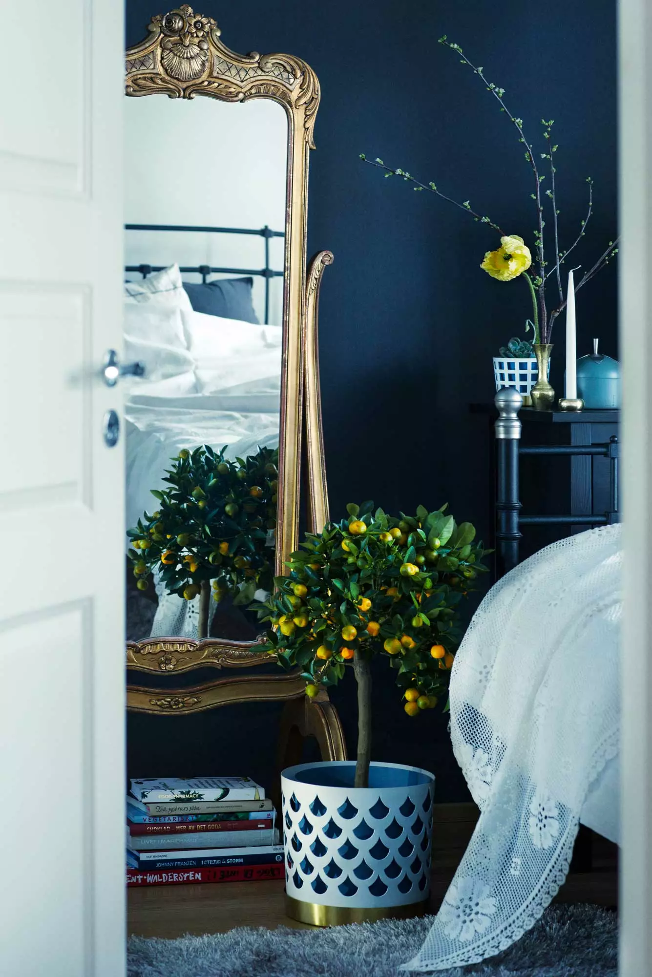 Trio Flower Pot from Klong, designed by Ania Pauser. The pot consists of three parts, a blue inside pot, an outer pot in white and a plate. The pots are made of thin lacquered steel and the plate is in brass with Klong’s logo engraved. The pattern of the outer pot is handmade and gives the pots an exciting depth and character without drawing the attention from the flowers in it.